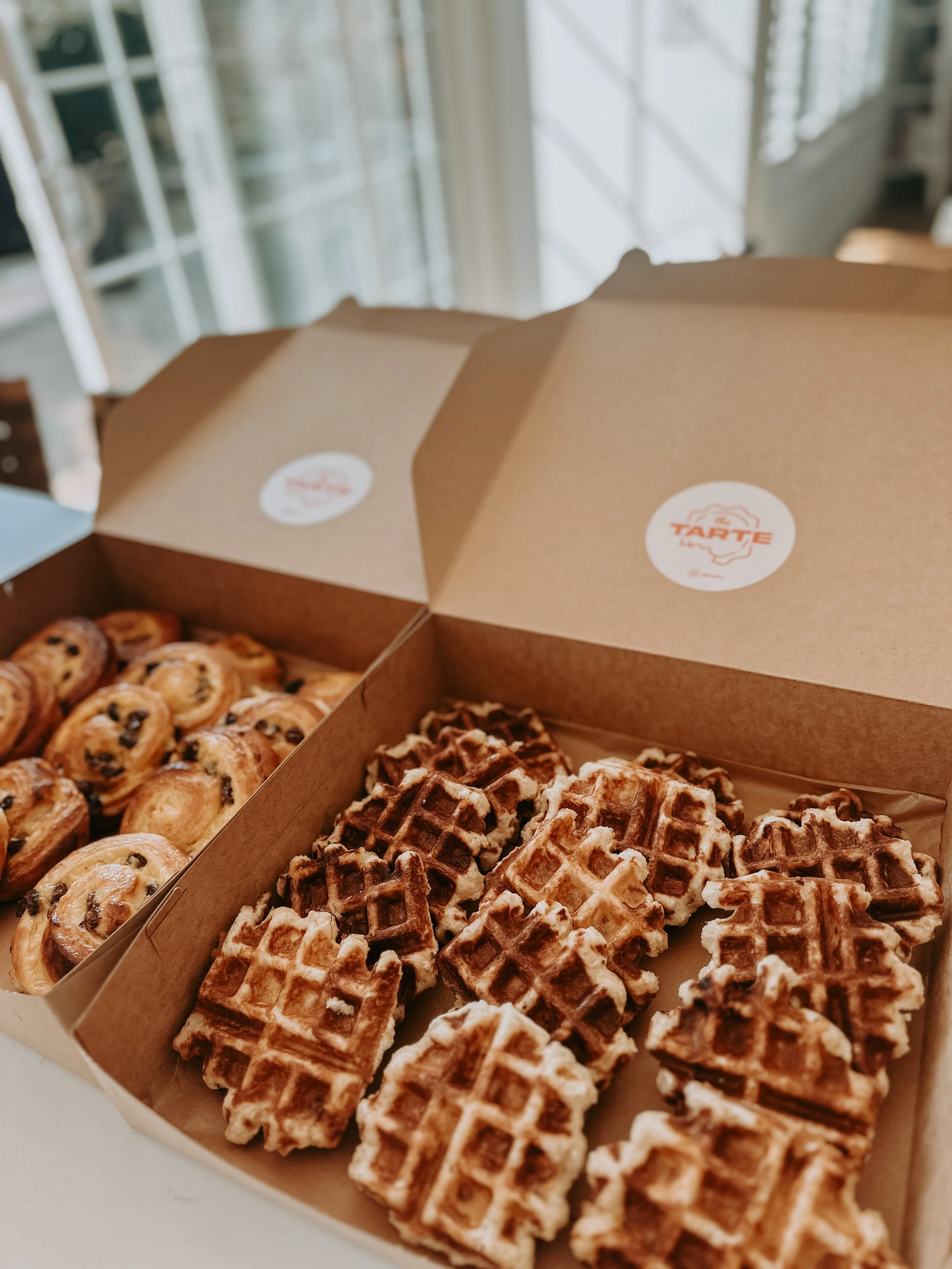 Each week, we’ll offer a limited selection of naturally leavened sourdough breads and premium viennoiseries: classic croissants, Belgian-style waffles, cinnamon rolls, and other favorites from our roots.